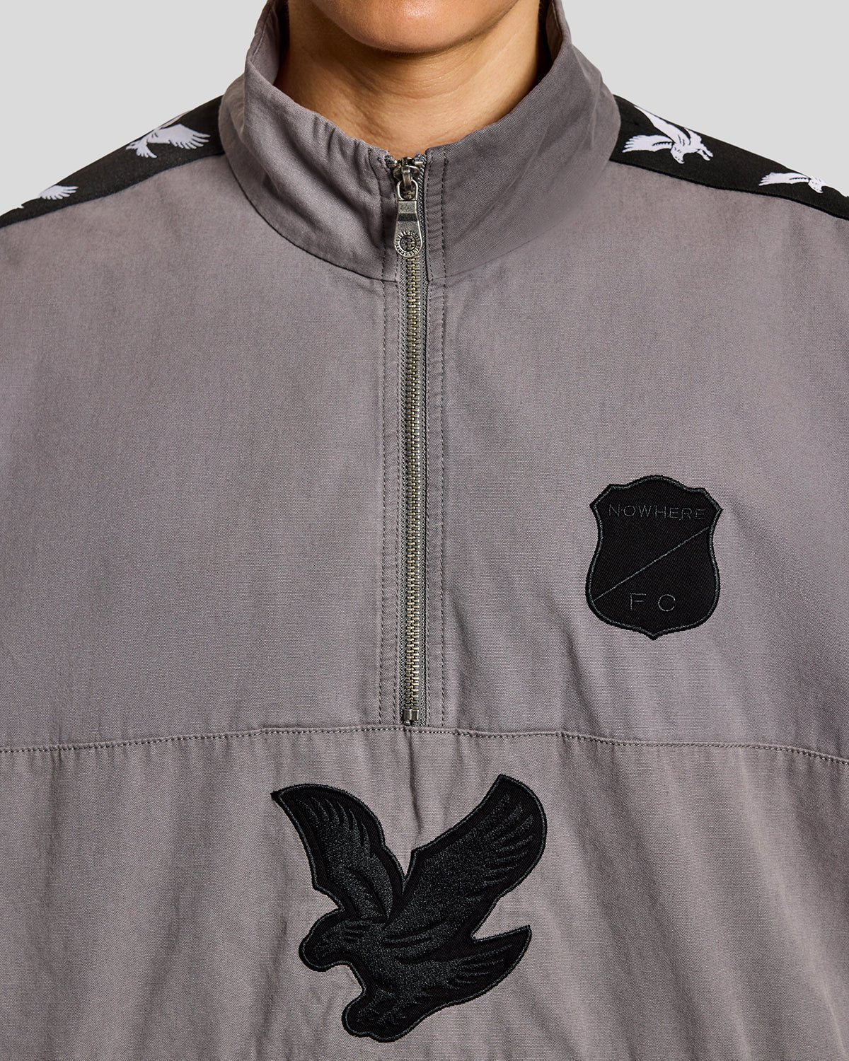 Washed cotton twill with a 90s training feel. This quarter zip drill top carries bold back Nowhere FC branding. It leans fashion forward, makes a statement and pairs with the matching pant to complete the set.